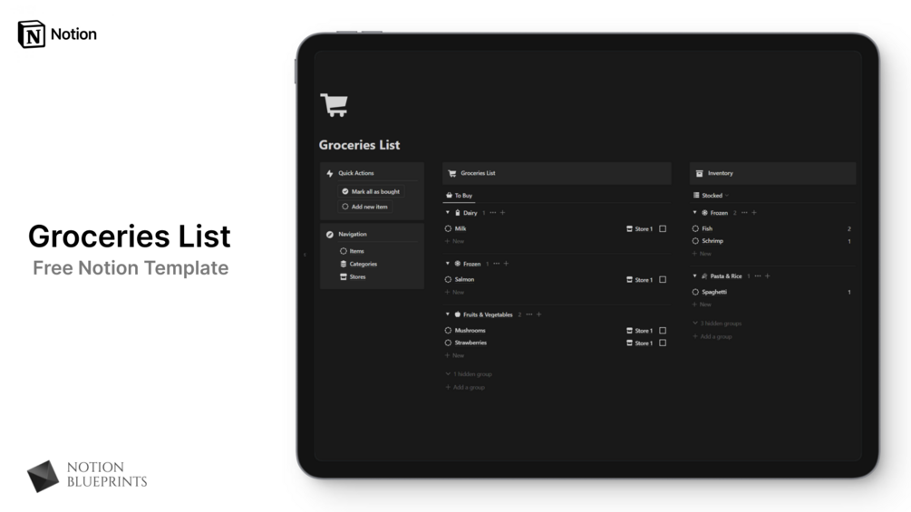 Simplify your groceries shopping experience with this free Notion template